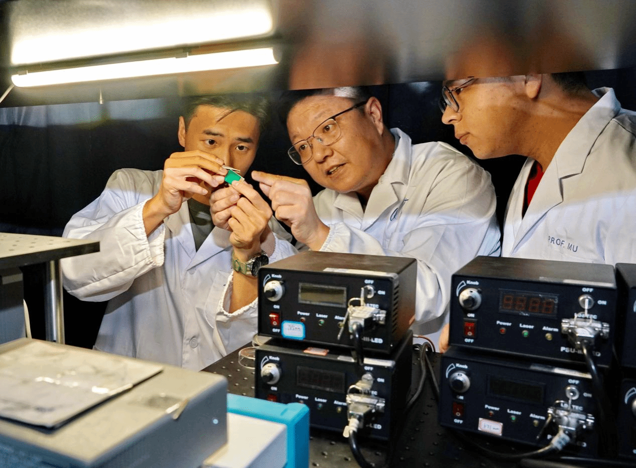 燕山大学本科生周宸弘(左)在导师舒予(中)的指导下进行半导体材料电学性能测试杨世尧摄