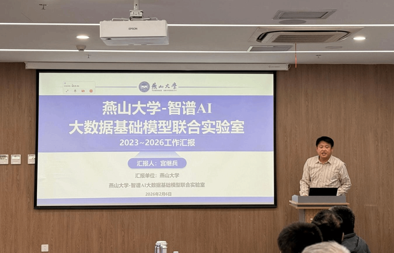 【新闻中心讯】2月6日,我校与北京智谱华章科技股份有限公司(以下简称智谱AI)在北京清华科技园智谱AI公司总部举行“燕山大学-智谱大数据基础模型联合实验室”合作协议续约仪式。这是双方自2023年共建联合实验室以来的又一重要里程碑,标志着校企合作进入深化发展新阶段。智谱AI创始人、清华大学计算机系长聘教授唐杰,总裁王绍兰,学校党委书记赵险峰,党委常委、副校长华长春等双方领导出席活动。