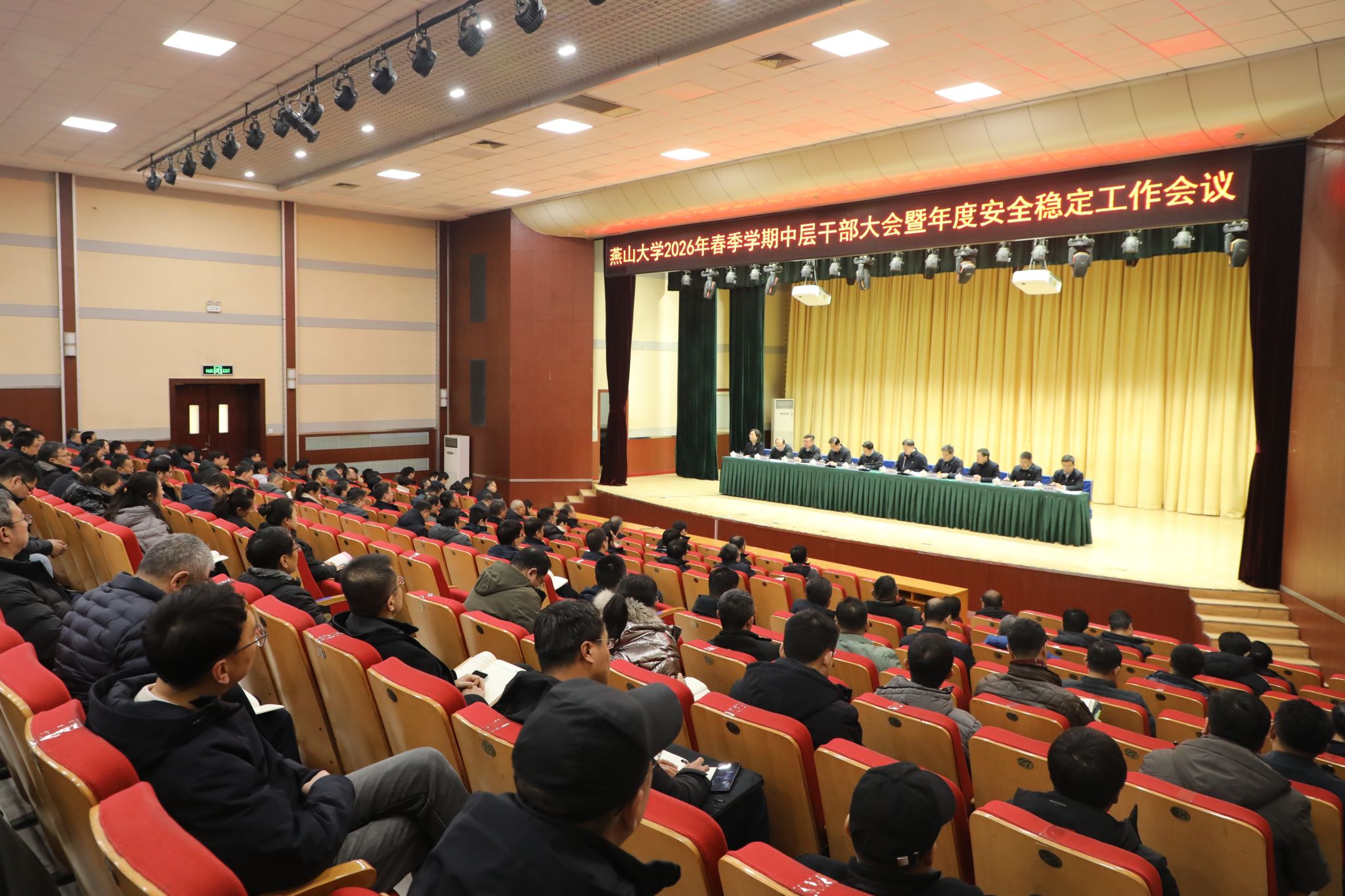【新闻中心讯】3月1日,燕山大学在西校区大学生活动中心报告厅召开2026年春季学期中层干部大会暨安全稳定工作会议。校领导赵险峰、王慧远、孙录印、王德松、陈国强、黄传真、文桂林、王跃华、李春玲、李春晖出席大会,全体中层干部参加会议。校党委书记赵险峰主持会议并讲话。