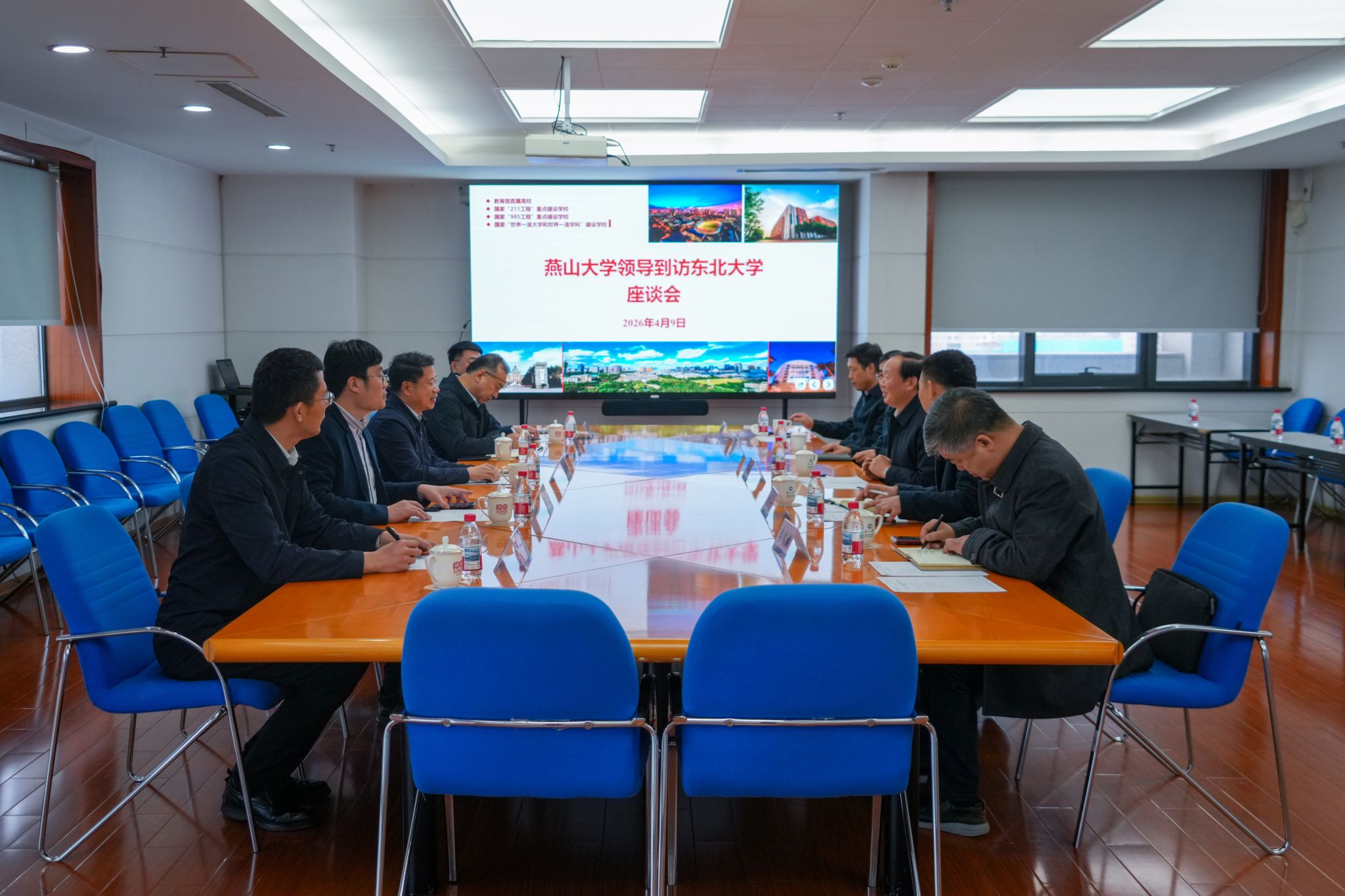 【新闻中心讯】4月9 日下午,燕山大学党委书记赵险峰率学校办公室、教务处、创新创业教育与指导中心、电气工程学院等部门负责人赴东北大学,调研学习拔尖创新人才培养与创新创业教育的先进经验。东北大学党委书记郭海及相关单位负责人出席座谈。