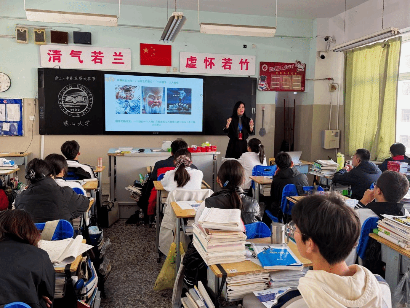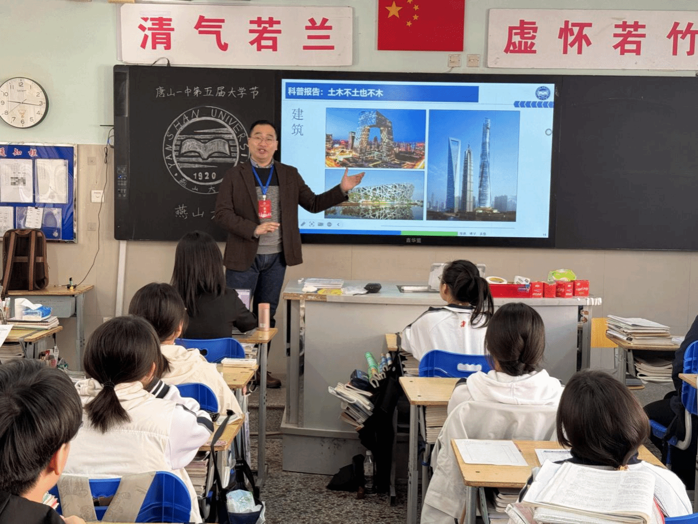 在唐山一中,建筑工程与力学学院王鼎以“土木不土也不木”为主题,从专业内涵、职业方向、国家重大基础设施建设及智能建造新技术等方面展开讲解,让学生深刻认识到土木工程对国家发展和民生改善的重要作用,强化了学子投身国家建设的责任意识;文法学院詹丽从AI复活名人、仿写经典等热点话题切入,以“当 AI遇见鲁迅,我们为何还要学文学?”为题,生动展现了汉语言文学在人工智能时代的独特魅力,通过解读《诗经》、分析广告文案与影视作品等鲜活案例,提炼出深度共情力、批判性思维和故事架构力三大核心能力,打破了文学学习的刻板印象。