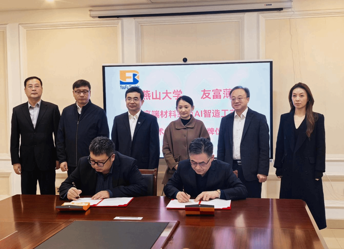 在签约揭牌环节,燕山大学深圳研究院常务副院长、机械工程学院教授白振华与友富薄板公司总经理袁志升分别代表双方签署共建协议,李春晖书记与李振宇副总裁共同为创新中心揭牌。全体与会代表共同见证校企合作进入实质性阶段。