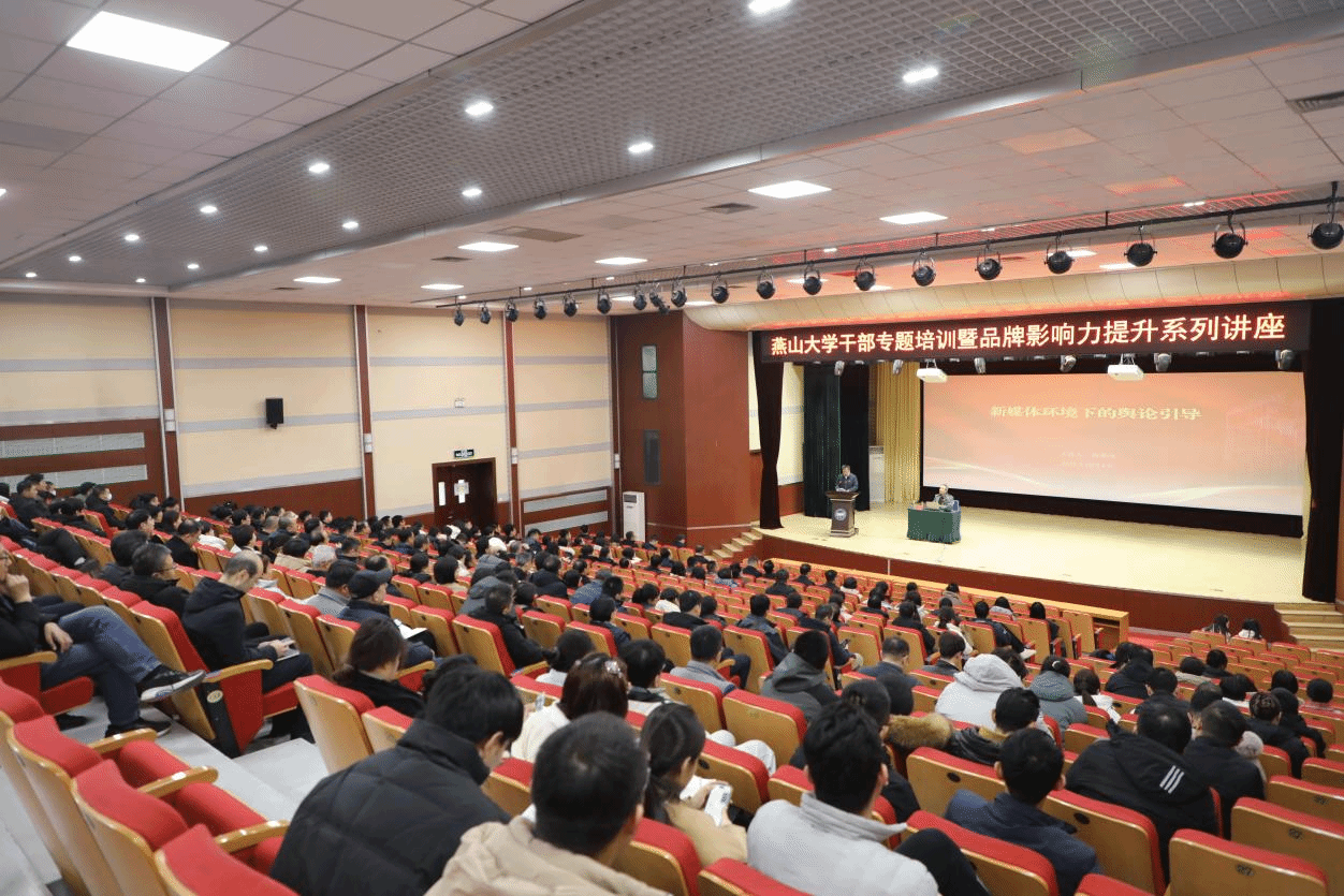 【新闻中心讯】为深入贯彻落实党的二十届四中全会精神,扎实推进干部队伍能力建设与学校品牌影响力提升工作,着力增强干部教师在新媒体环境下的舆情应对与舆论引导能力,12月4日,燕山大学在西校区大学生活动中心举办了“新媒体环境下的舆论引导”专题辅导报告会。校领导、处级干部、专职辅导员、舆情员等参加了此次培训。报告会由校党委副书记蔡星周主持。