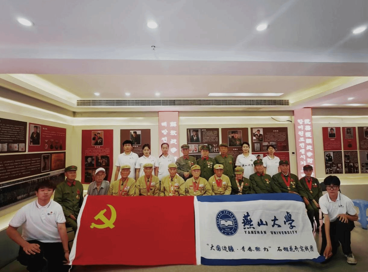 在“行走的党课:边疆行·共筑民族同心路”主题党日活动中,支部成员与抗日战争、解放战争、抗美援朝战争老兵合影
