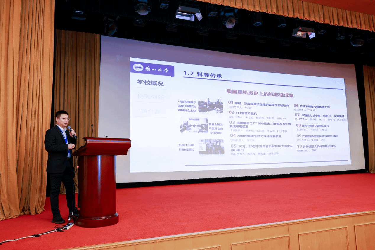 在主题演讲环节,华长春以《燕山大学前沿技术如何走向首台套工程》为题,分享了学校在推动产学研协同创新、培育行业领军人才、支撑首台(套)装备研发等方面的实践经验与未来展望。他表示,学校始终坚持“校企协同、攻坚克难、精研出新”的优良传统,成功研制出多台(套)具有自主知识产权的重大装备,有力支撑了国家首台(套)重大装备的自主化进程。未来,学校将持续深化与行业企业的战略合作,积极参与国家重大装备研发与产业化进程,开展更多技术探索与工程实践,推动前沿技术、行业特色与未来产业方向深度融合,力争研发更多首台(套)装备,为我国重型机械行业高质量发展持续赋能。