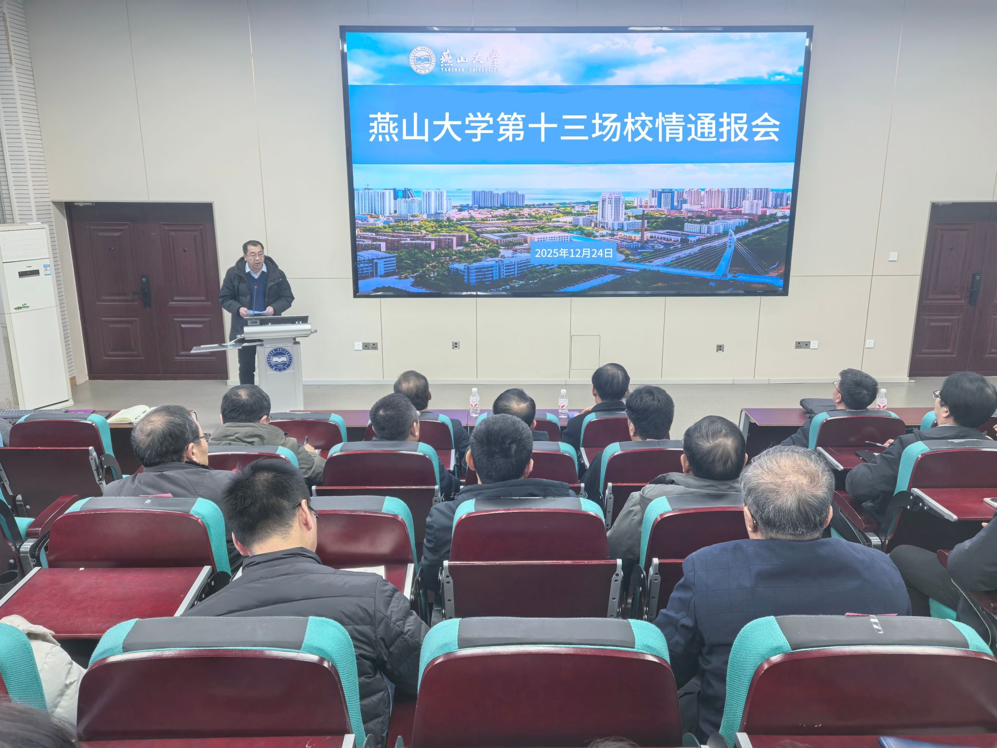 会上,学校办公室主任孙利紧扣“一个奋斗目标、四个阶段、一个冲刺目标、五大攻坚战、六项办学方略、九项重点任务”的核心要义,系统阐释了第五次党代会擘画的宏伟蓝图,同时全面回顾2025年的奋进实绩,系统诠释了党代会精神落地生根、开花结果的生动实践。人力资源处处长黄华贵立足人事人才工作全局,以服务学校战略发展为导向,从师资队伍基本情况、燕山学者文件修订、师资博士后升级版建设、专业技术岗位聘用及绩效分配制度改革五个关键维度,作了系统全面的专题介绍,汇报既客观梳理了当前师资队伍建设的阶段性成效,又深刻阐释了人事制度改革的创新举措与实施路径。实验室与资产管理处处长王耀峰围绕资产管理相关工作进行了通报,内容涵盖大型仪器设备开放共享与公有用房有偿使用两大板块,系统梳理了学校在优化资源配置、推动开放共享上的创新实践与工作成效。