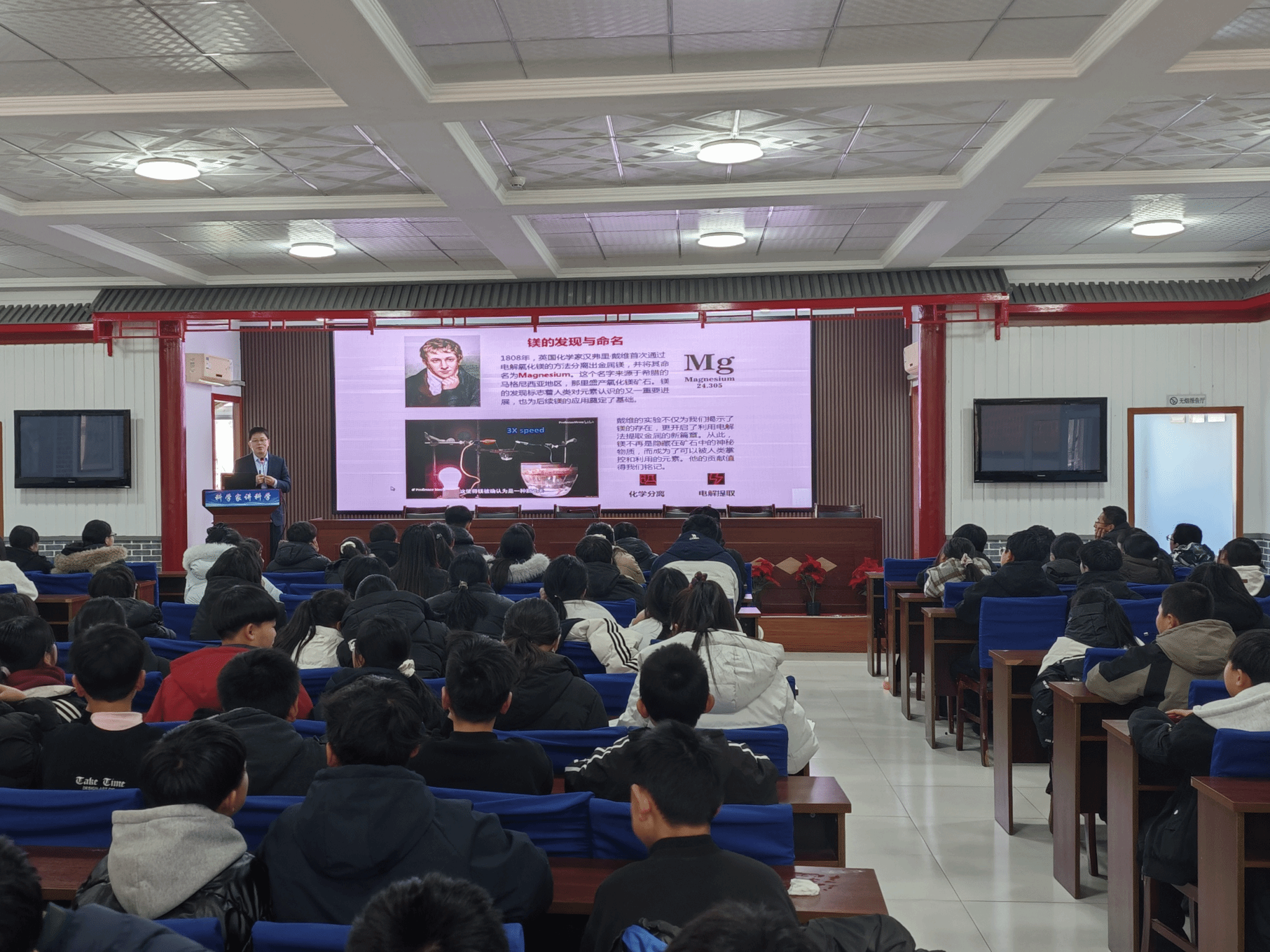 随后,彭秋明教授为兰亭中学作了《走进神秘的镁世界》的专题讲座。他以镁元素为主线,深入浅出地讲解其在轻质合金、能源存储和生物医用材料中的广泛应用,将高深科研成果转化为学生听得懂、感兴趣的生活案例。从实验室到产业应用,从课本知识到国家科技发展,讲座拓宽了山区学子的科学视野。