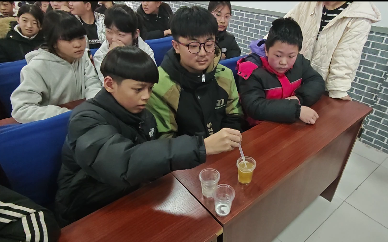 聘任仪式后,举行了“科学大讲堂”首场活动,燕山大学材料科学与工程学院“师生协力”科普团为兰亭中学的孩子们带来一堂别开生面的科学实践课:空气炮实验中腾空而起的烟圈引发阵阵欢呼,变色实验通过化学反应呈现缤纷色彩。现场气氛热烈,惊叹声不断,让孩子们在亲身实践中直观感受到科学的魅力。