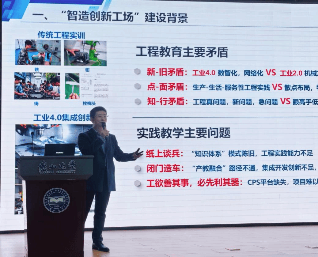 围绕“智造创新工场”的建设历程,程文冬教授详细阐述了其“3-4-5-5-3”工场模式。该模式以兵器与装备制造业实践育人目标为引领,依托虚实融合的CPS智能制造四大场景,构建“企业1线-工场3块-工场1线”五大项目模块,通过“命题-设岗-协作-反思-拓展”五步骤教学路径,以“场-校-企”产教融合虚拟教研室为保障,实现了从传统实训到数智化创新实践的转型。他强调,产教融合需立足“新、真、实、亮”,通过共建真实实践平台、共研行业实际项目、共融企业质量标准,打通“从课堂到岗位”的能力通路。