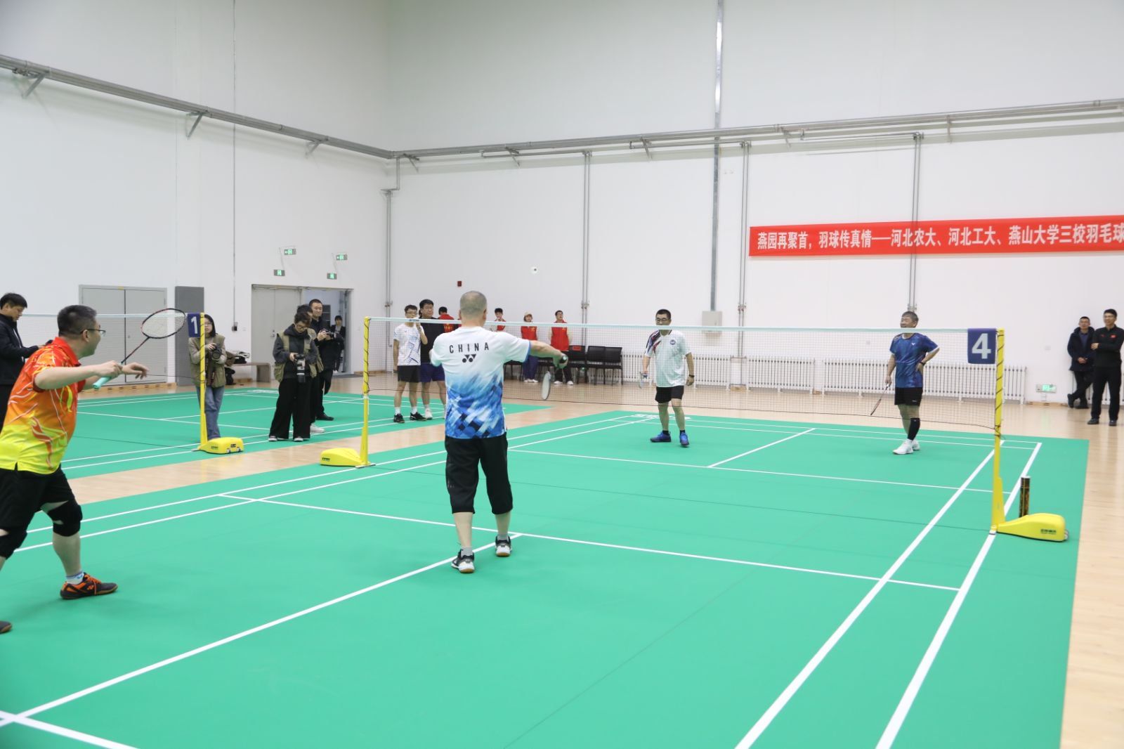 【新闻中心讯】为加强校际交流、增进彼此友谊,1月10日下午,燕山大学在新体育馆举办了一场别开生面的羽毛球友谊赛。河北工业大学、河北农业大学及东道主燕山大学三校代表队齐聚一堂,以球会友,共叙情谊。燕山大学党委书记赵险峰,党委副书记蔡星周,党委常委、副校长李春玲出席活动。