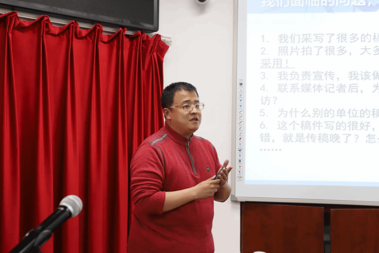 蔡常山在主持时表示,本次培训是提升全校宣传队伍业务能力、助力学校品牌影响力提升的重要举措,希望参训人员能够立足自身岗位,不断提升宣传工作质量和水平,积极传播燕大正能量、讲述燕大好故事,为提升我校品牌影响力、推动学校高质量发展贡献力量。