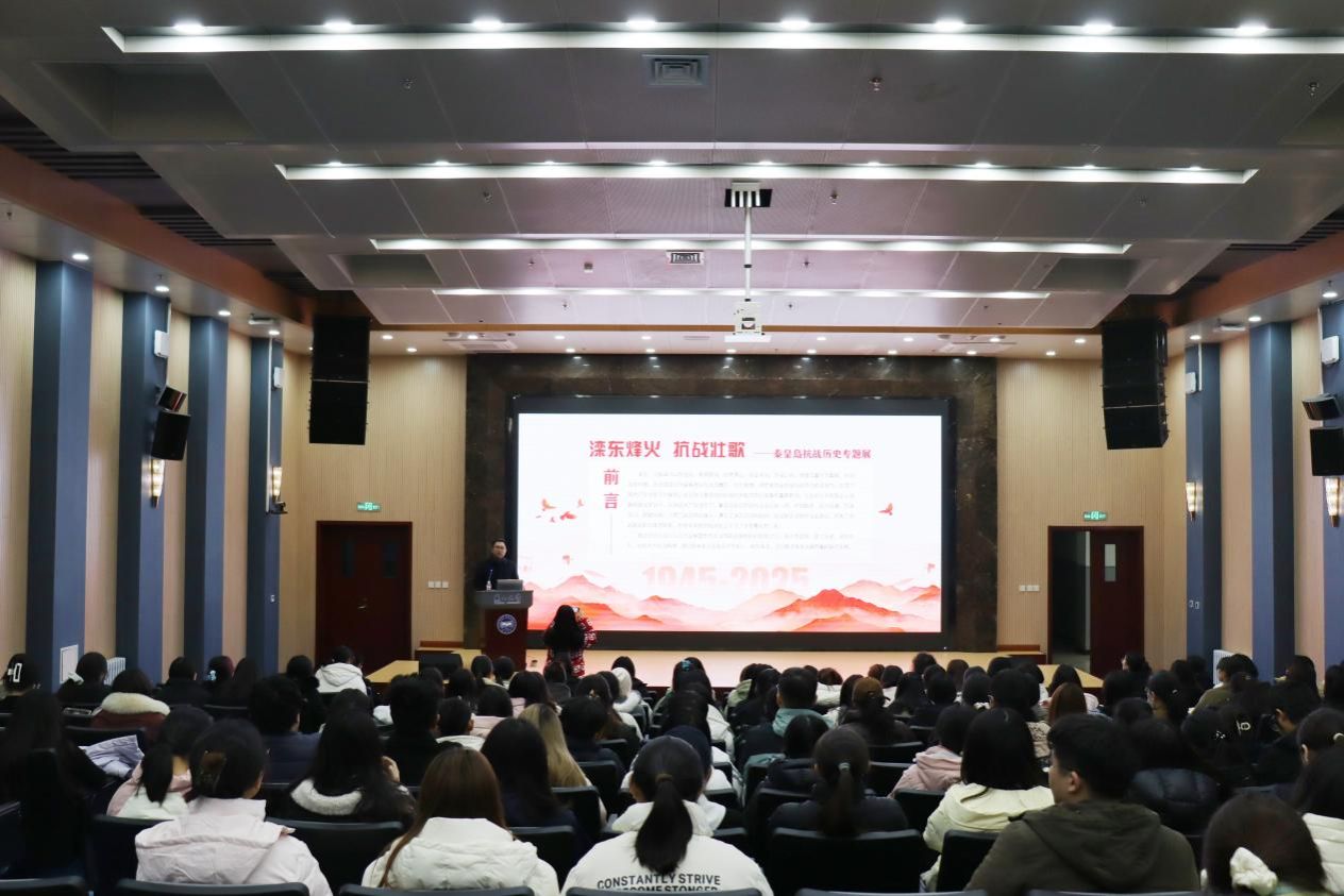 以专家讲座小故事传递精神伟力大能量。外国语学院党委积极整合馆校优质资源,邀请秦皇岛市玻璃博物馆副馆长陈厉辞以滦东抗战与英烈人物为题讲座。讲座中,陈馆长聚焦滦东抗战核心历史,生动解读冀东抗日根据地斗争故事,深情讲述革命英雄的热血事迹。通过大量的史实资料,引导学生从英烈事迹中汲取精神养分,进一步厚植爱国情怀,传承红色基因。讲座现场,学生们认真记录、踊跃提问,李同学激动地说,“第一次知道秦皇岛有这么多本土英烈,他们的故事比课本更动人,也让我明白爱国不是口号,而是做好每一件小事的责任”。