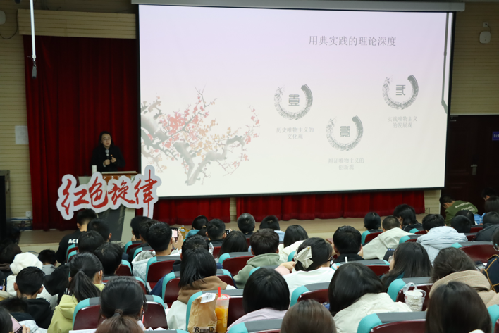 【新闻中心讯】10月28日晚7点,由马克思主义学院主办,马克思主义研究生会承办的第九十四期“红色旋律”读书会在我校四教109举行。本期读书会以“在《习近平用典》中感悟传统节日的文化意蕴”为主题,由马克思主义学院李鹏昊老师主讲。