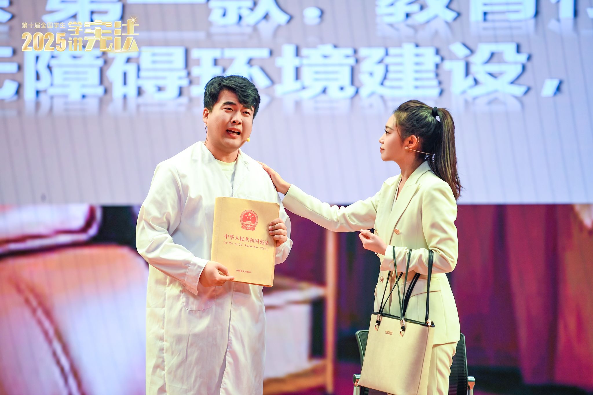 据悉,获奖作品《火种》取材于真实校园故事,讲述了大学生张天明因病失明后,在《中华人民共和国宪法》精神的指引与保障下,克服困难、重返校园,最终实现自我成长并积极帮助他人的感人经历。该剧以真挚的情感和富有创意的表现形式,生动诠释了“公民在法律面前一律平等”“公民有受教育的权利和义务”等宪法条文如何成为照亮个体生命的“火种”。