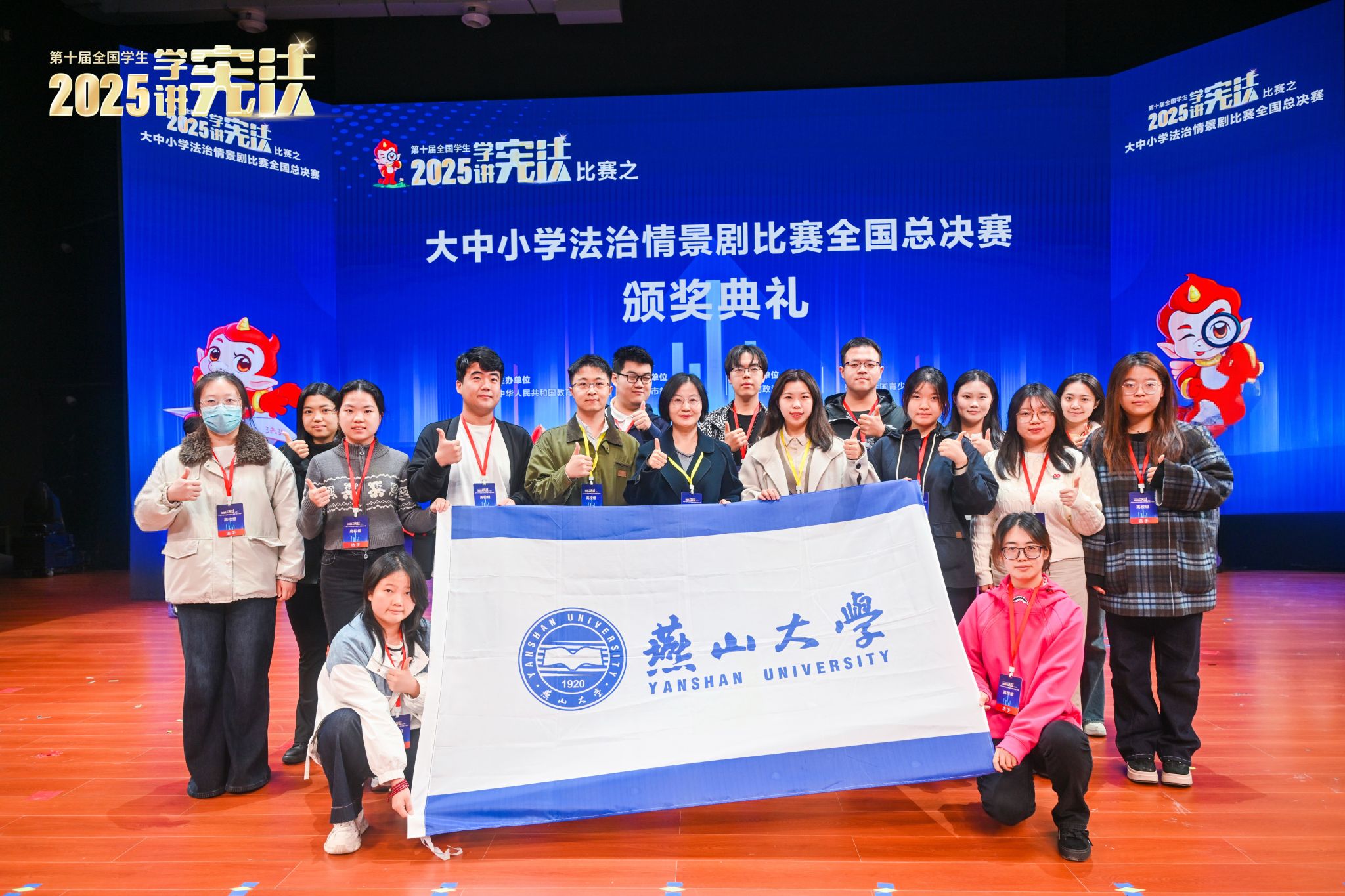 【新闻中心讯】11月8日至11日,第十届全国学生“学宪法 讲宪法”比赛之大中小学法治情景剧全国总决赛在重庆举行。本次比赛由教育部主办,重庆市教育委员会承办,西南政法大学协办,教育部全国青少年普法网支持。燕山大学文法学院(公共管理学院)参赛作品《火种》荣获全国二等奖,张玉华、刘雪峰、卢雨涵三位教师获评“优秀指导教师”。