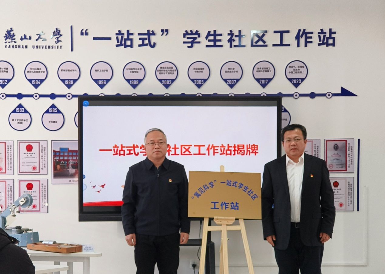 【新闻中心讯】11月18日上午,燕山大学“寓见科学”一站式学生社区工作站新场地启动仪式在西校区一组团举行。校党委副书记蔡星周,党委学生工作部部长、学生社区党工委书记薛传佳,党委学生工作部副部长王银思,材料科学与工程学院党委书记王国伟,正处级专职辅导员袁云岗,学院全体辅导员及学生代表共同出席见证这一育人新阵地的启用。仪式由学院党委副书记王亦晨主持。