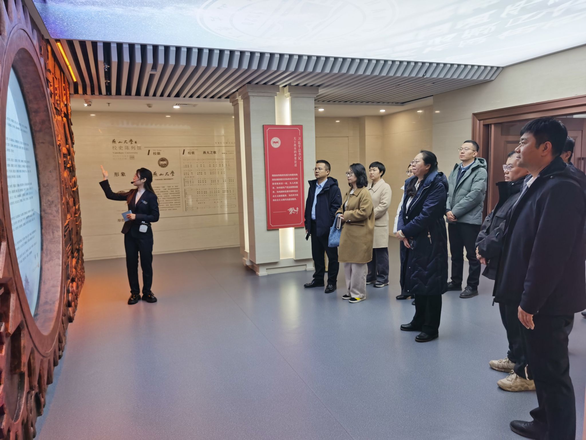 下午,来访客人在杨健民的陪同下,参观了燕山大学校史陈列馆,并深入各系部就党建思政、学科专业建设、科学研究等工作开展专项调研交流。