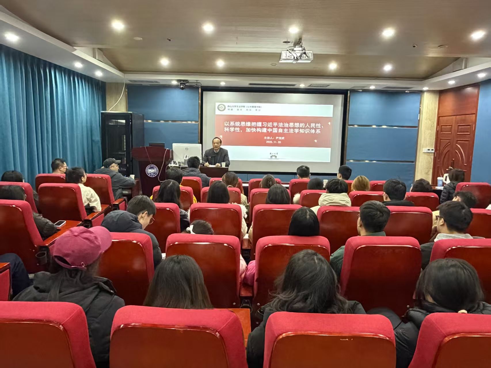 【新闻中心讯】11月25日,“燕山大讲堂”学术讲座在燕山大学人文馆217室成功举行。中国法学会副秘书长,《民主与法制》社党委书记、社长尹宝虎为我校师生作题为“以系统思维把握习近平法治思想的人民性、科学性,加快构建中国自主法学知识体系”的学术讲座。讲座由全面依法治省研究院副院长刘立霞主持。