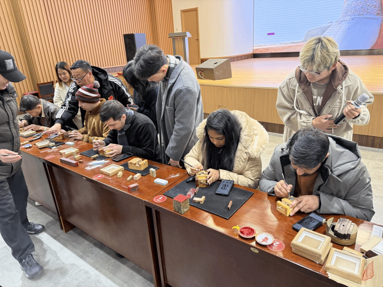 【新闻中心讯】12月21日,由戴河镇党委、政府与燕山大学国际教育学院(欧洲学院)联合主办的“刀刻金石·丝路通古今”活动在北戴河艺术村落燕山大学来华留学生中国国情教育实践基地圆满收官。本次活动吸引来自中国、美国、阿塞拜疆、巴基斯坦等9个国家的30余名高校学生、北戴河评剧团老艺术家及本地青少年代表共同参与,通过“非遗技艺体验+文化对话”的创新形式,书写了跨文化传承的生动篇章。