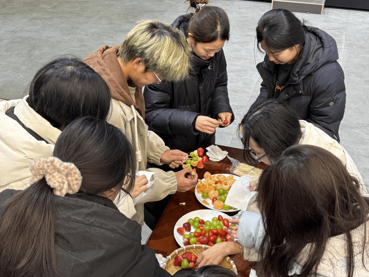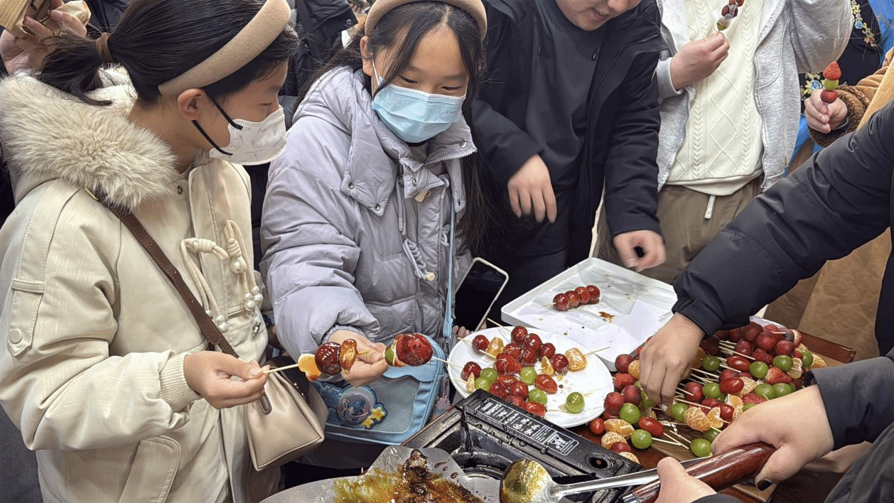 在非遗美食制作工坊,国际学生与本地青少年组成“文化搭子”,用糖葫芦串起文化共鸣,共同体验传统小吃制作。山楂去核、熬糖、裹糖衣,看似简单的步骤却暗藏技巧。志愿者曹毛毛非常享受在本地手艺人指导下熬出晶莹剔透的糖衣的学习过程:“糖葫芦的甜,是传统与创新的甜,更是不同文化碰撞出的甜。”