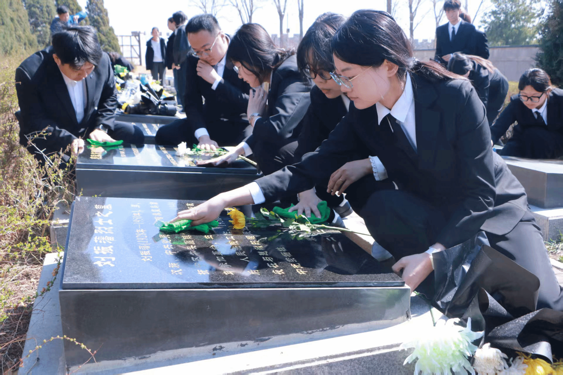 师生代表清理烈士墓碑