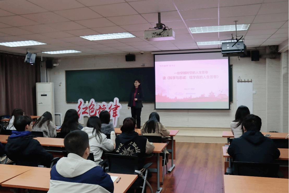 【新闻中心讯】3月25日晚,燕山大学马克思主义学院第九十七期“红色旋律”读书会在东校区四教103室开展。本次读书会以“一份穿越时空的‘人生答卷’——读《科学与忠诚:钱学森的人生答卷》”为主题,由郭清秀老师主讲。