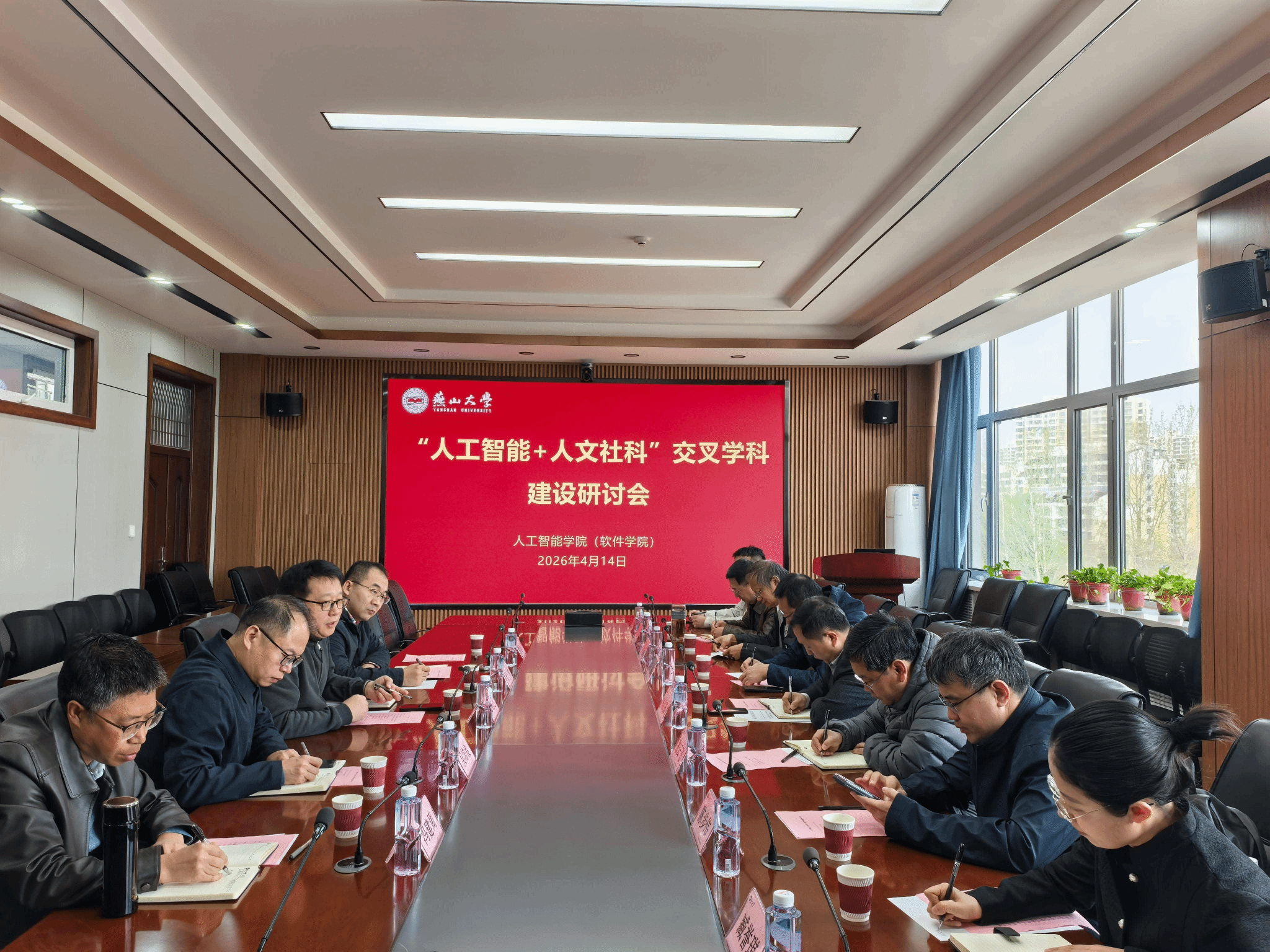 【新闻中心讯】为扎实推进人工智能与人文社科交叉领域发展,明确交叉学科博士点申报方向,4月14日上午,人工智能学院(软件学院)在综合训练中心1号楼336室召开“人工智能+人文社科”交叉学科建设研讨会。研究生院、社会科学处、长城文化研究与传播中心、经济管理学院、外国语学院、文法学院、马克思主义学院、艺术与设计学院、体育学院和人工智能学院(软件学院)相关负责人参加会议,会议由人工智能学院(软件学院)常务副院长赵逢达主持。