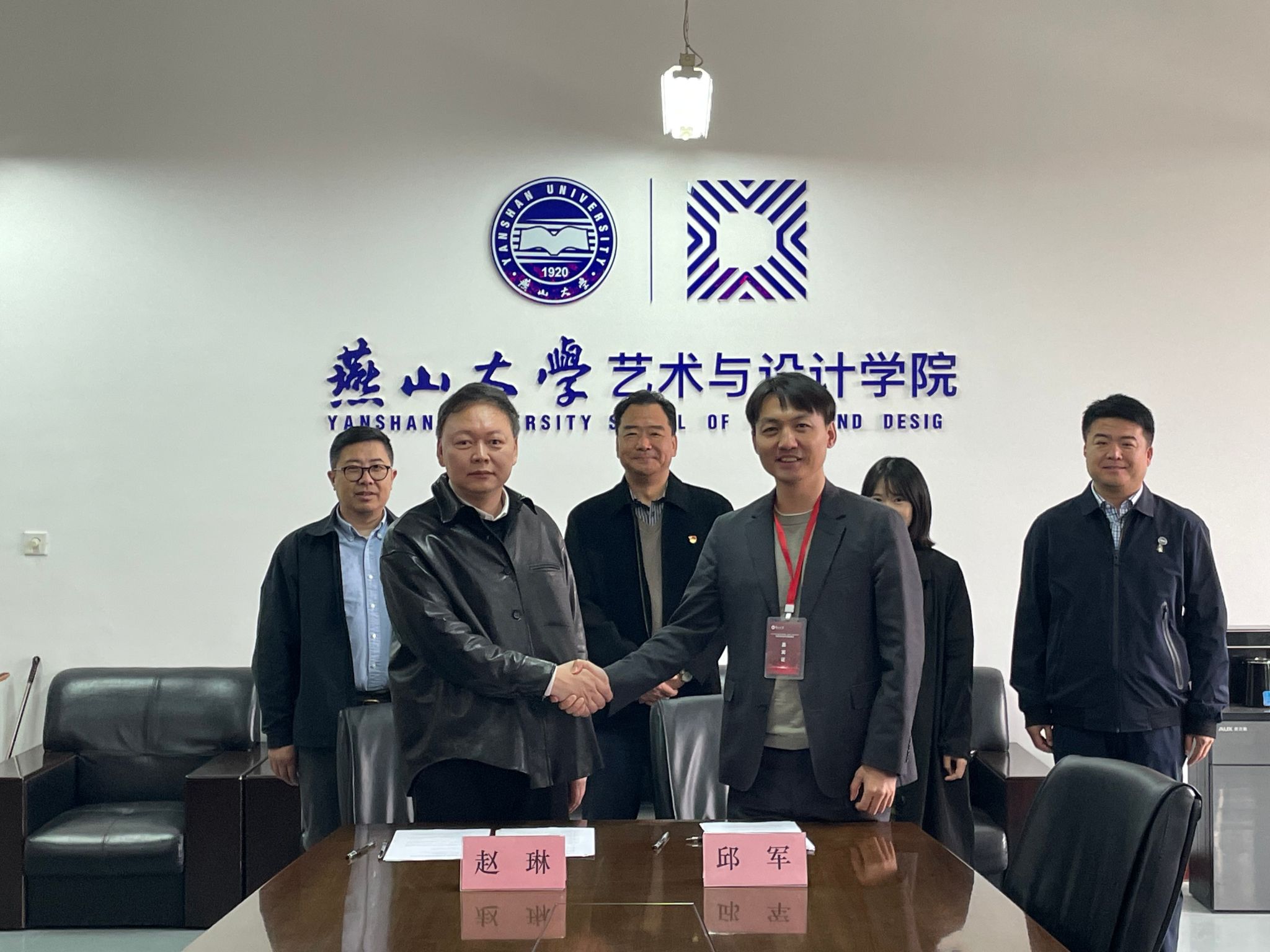 研讨会上,赵琳与邱军签署了《校企合作协议书》。赵琳重点介绍了艺术与设计学院的基本情况以及近年来在人才培养、学科建设、科学研究等方面取得的成绩。在燕山大学2026届艺术与设计类专场招聘会专场召开之际,邀请中国动漫集团前来招才纳贤、研讨签约、共商合作,是学院深化产教融合、拓展毕业生高质量就业渠道的重要举措。希望通过“周末河北专家行”,进一步打通校企人才共育、项目共研、成果共享的通道。