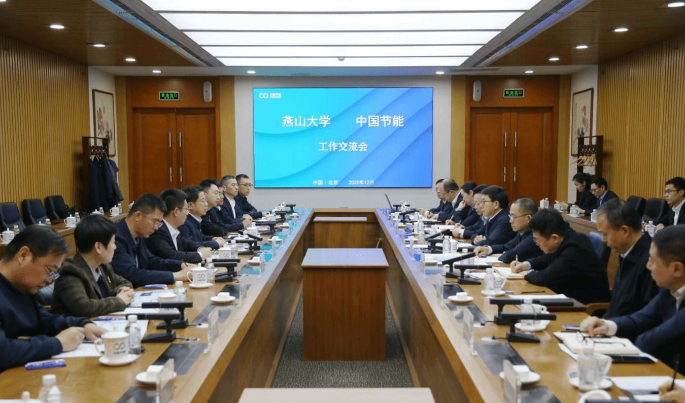 【新闻中心讯】12月23日下午,学校党委书记赵险峰率队访问中国节能环保集团有限公司(以下简称中国节能),就进一步深化校企产学研合作、推动绿色技术创新开展座谈交流,并同中国节能旗下中国环境保护集团有限公司签署《共建绿色技术创新实验室协议》。中国节能集团党委书记、董事长廖家生,集团党委副书记、董事刘大军,集团党委常委、副总经理曹华斌,燕山大学党委常委、副校长华长春等双方领导出席活动。