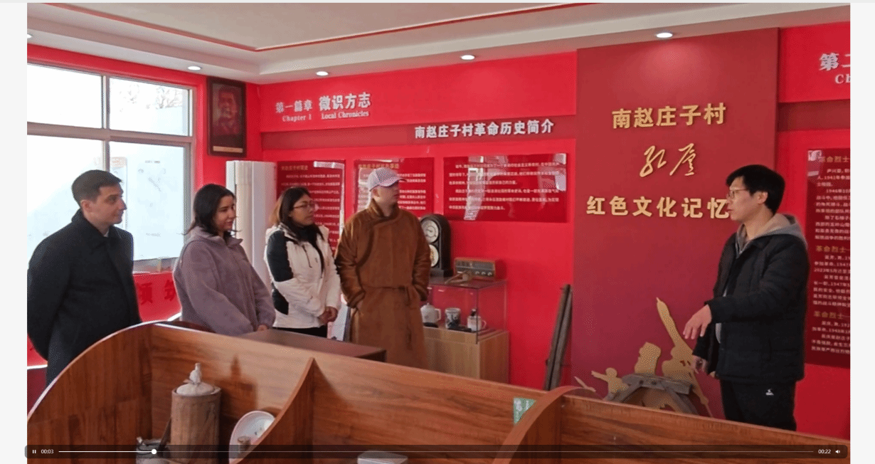 随后,留学生们参观燕山大学下沉帮扶党建项目“红庐”红色文化记忆馆,深入了解中国红色文化传承;在“红燕”党员之家活动室,下沉干部向大家详细介绍了驻村帮扶成果,让留学生们了解中国乡村振兴的实践成效。