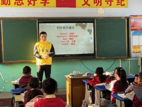 仪式结束后,系列交流活动有序开展。在赵庄子小学,留学生志愿者们参与“雏燕课堂”志愿服务,通过外语趣味教学、异国文化分享、操场小游戏等形式与小学生亲切互动。课后,留学生们还亲身体验中国非遗传统文化——漆扇的制作技艺。