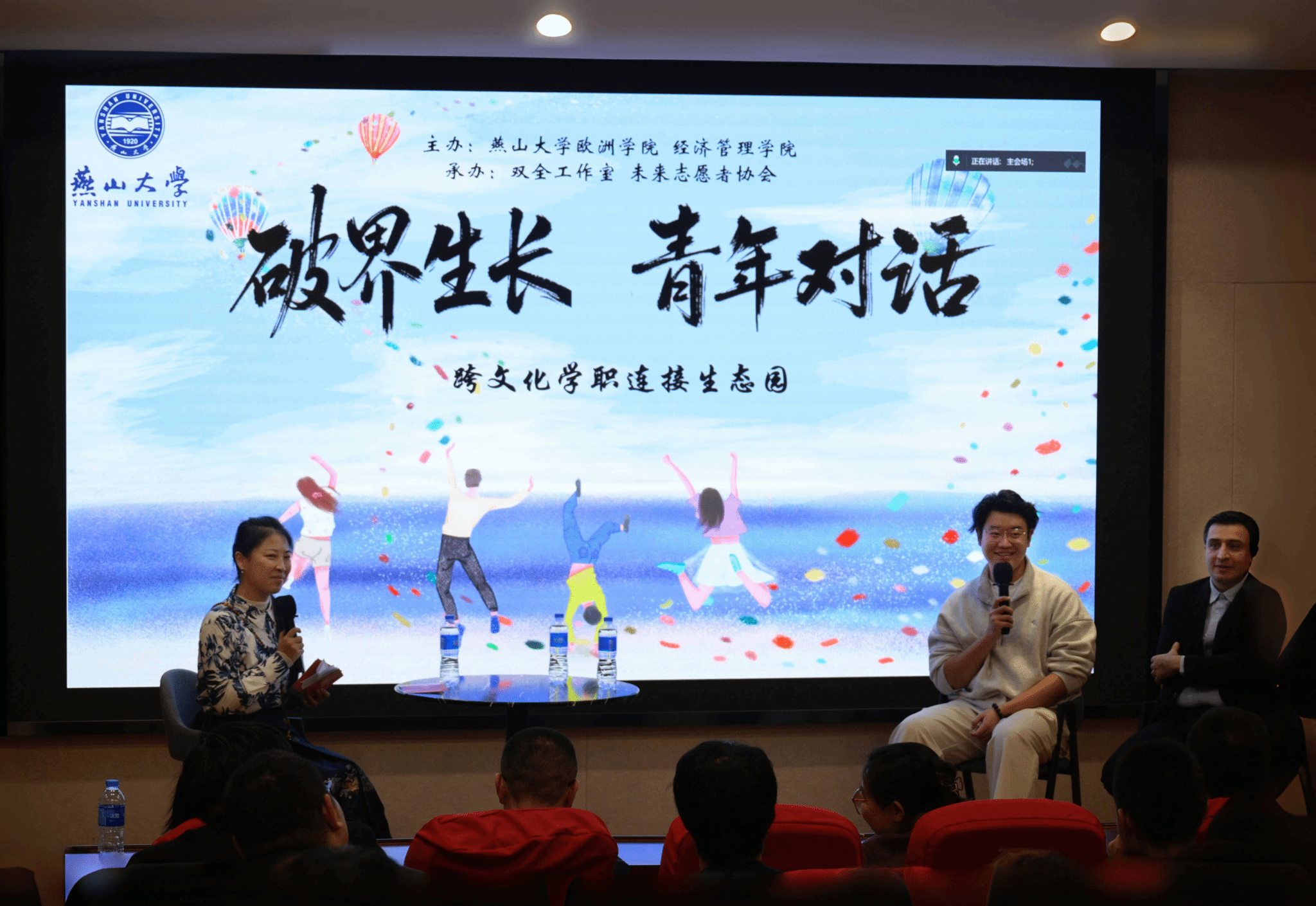 【新闻中心讯】11月2日,由燕山大学欧洲学院与经济管理学院联合主办、双全工作室、未来志愿者协会承办的“破界生长——学职连接生态园”首期活动“青年对话”于西五教A218顺利开展。活动通过六国硕博学子的真实经历分享与深度访谈,为线上线下460余名学子搭建了从留学决策到职业规划的全链路认知平台。燕山大学招生就业处副处长朱文华、经济管理学院党委副书记王海涛、国际教育学院(欧洲学院)相关负责领导及校院就业负责老师出席活动。