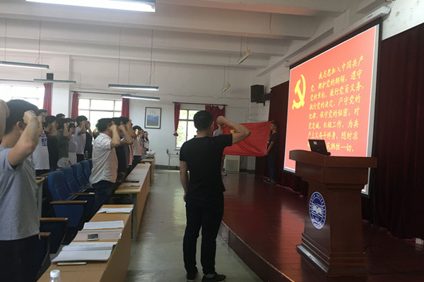 活动的第一部分重温入党誓词。全体学生党员面向鲜艳的党旗,举起右手,面向党旗庄严地重温入党誓词,表达了对党忠诚、积极工作的决心和信心。同学重温入党时期,大大提升了支部党组织的凝聚力和战斗力,激发学生党员政治热情。第二部分是组织全体参加学生党员共同观看了《建党伟业》,在观看之前,机械工程学院分党校办公室主任周志国向学生党员们讲解了影片拍摄的背景,以及全体明星演员不要片酬免费出演为党献礼的意义。虽然有很多同学已经观看过这部影片,但是在7月1日这么有意义的日子重温一遍影片,重新体会一遍在当时的历史条件下,中国共产党的成立带给中国,带给人民的希望,还是让大家感慨万千,不少同学随着影片情节的发展潸然泪下。